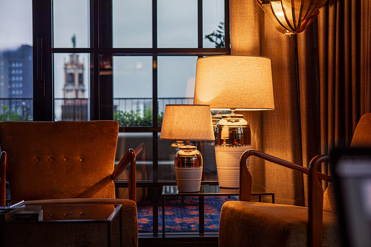 Dal design raffinato, proposta in due misure con paralume  in tessuto.